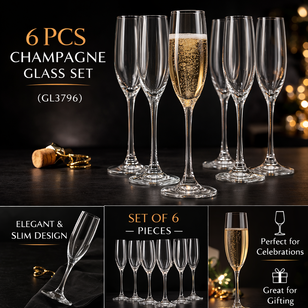 Celebrate special moments with this elegant 6-piece champagne glass set, designed with a sleek, slim silhouette that enhances the aroma and bubbles of your favorite sparkling wines. Crafted f